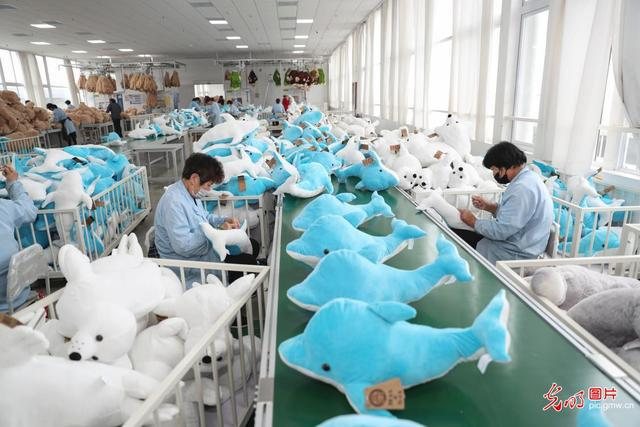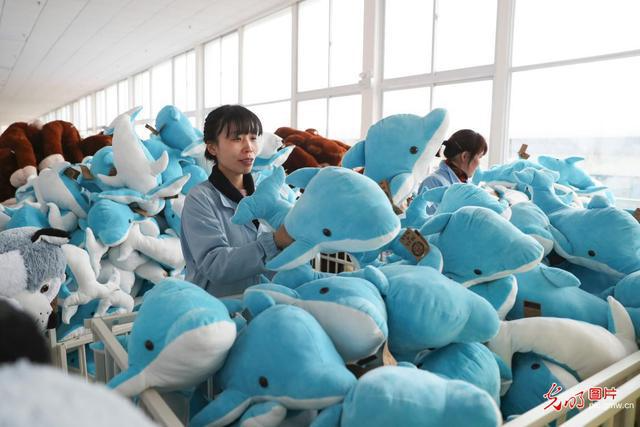 2021年4月26日,在江苏连云港市赣榆区石桥镇一家玩具厂生产车间,工人在整理玩具。近年来,石桥镇大力发展玩具生产出口,年生产加工玩具1500万个,产品出口多个国家和地区,带动当地400余名村民就业增收。(司伟摄/光明图片)