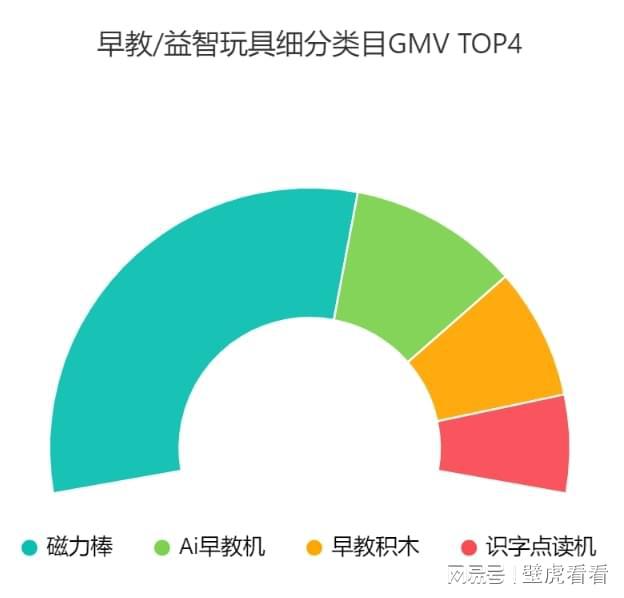 在早教/益智类玩具中,数据显示,早教磁力棒以38.9%的GMV占比,位列TOP1,相较于普通的积木,磁力棒的磁性不但有助于孩子更多创意的搭建、想象力的发挥,也能让家长快速收拾散落的玩具,一举两得。
