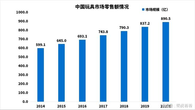 壁虎看看整理发现,2019年我国玩具零售规模约837亿元,同比增加5.93%;当时预计2020年将进一步保持6%以上的增速,零售规模可达890.54亿元,持续领跑全球市场。